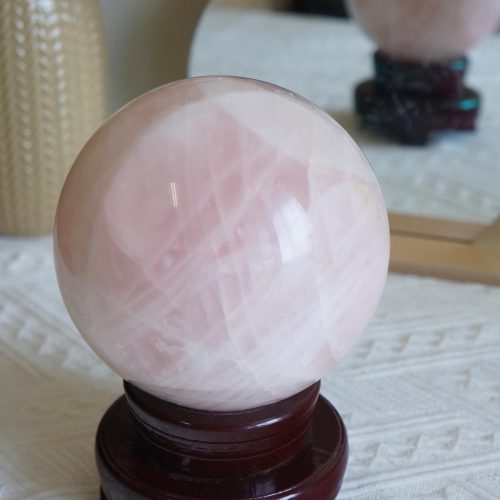 粉晶是著名的愛情寶石,又被稱為芙蓉晶或玫瑰水晶,是因天然水晶中含有微量的鈦元素而形成粉紅色而得名。粉晶由於祂粉嫩的顏色,能療癒心輪,被視為治癒系水晶,能帶來溫和的能量,幫助人們療癒傷痛,讓人充滿溫暖和諧的能量。粉晶讓佩戴者具有溫和愉悅感,能改善人際關係、戀人關係,也能吸引各種美好的關係。因此粉晶功用主人緣,除了能招桃花、加強親和力、改善人際關係,也能幫助個人或商家招攬人氣。