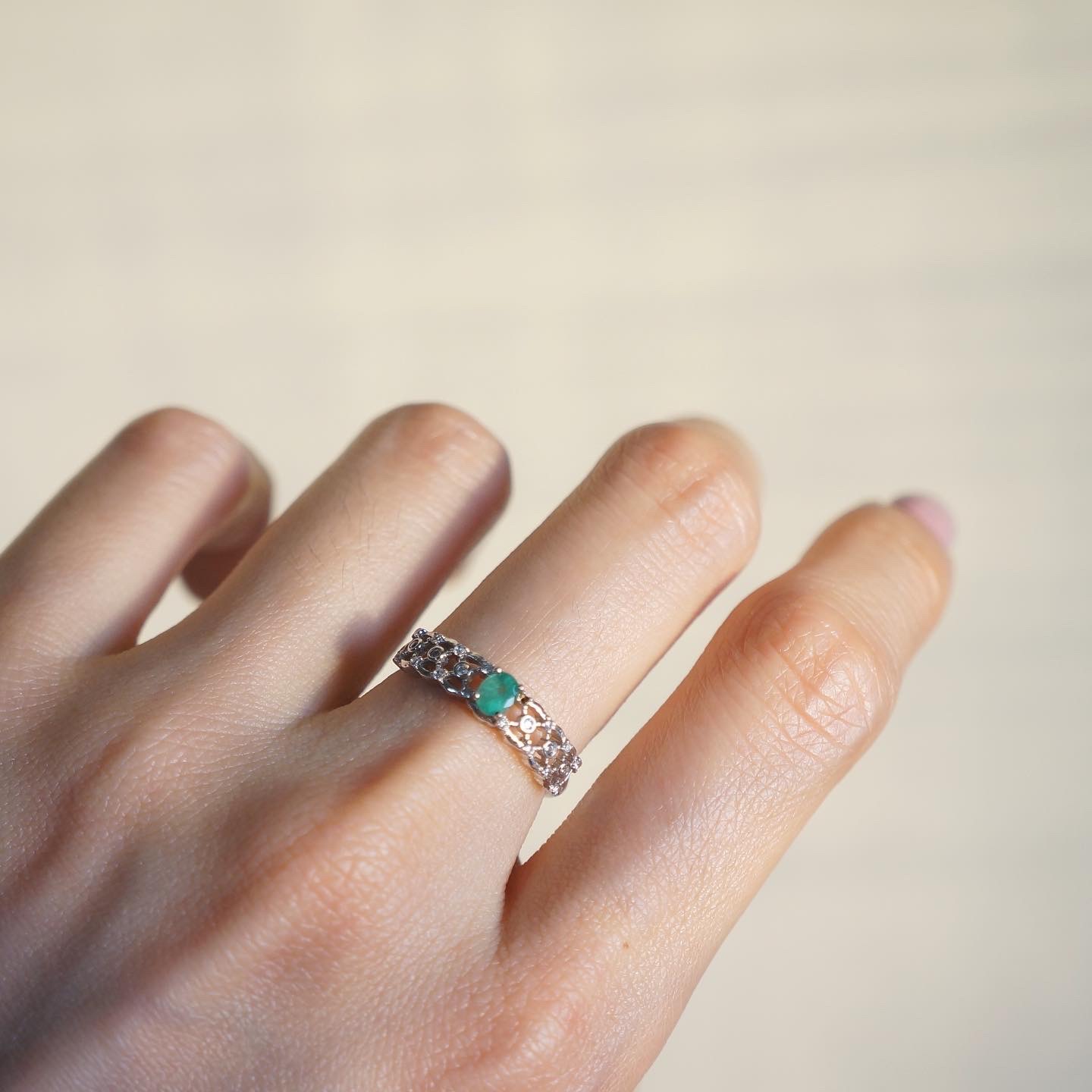 Category: 戒指 Tags: 心輪, 祖母綠, 綠色晶礦