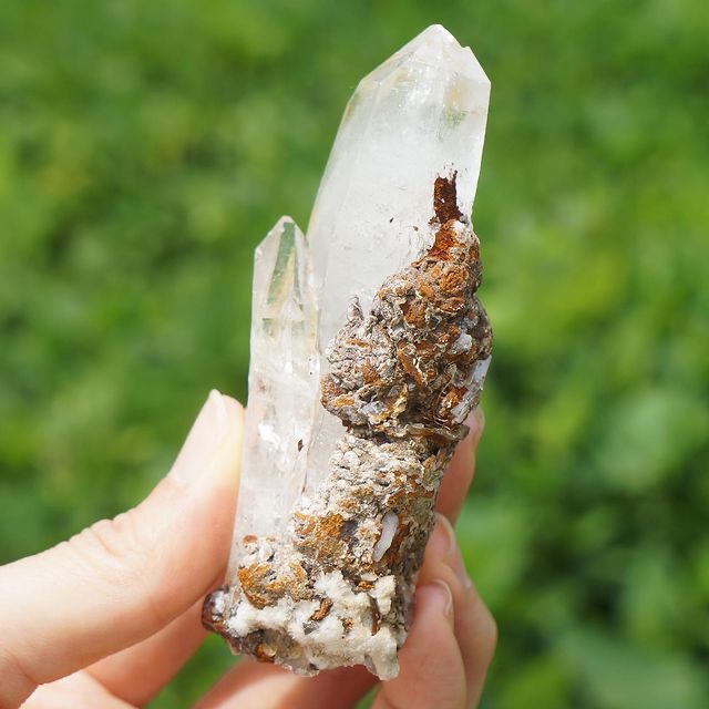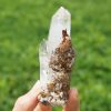 這位帶了很特別的母岩,母岩有很好看滄桑感帶了些不知名共生,三個晶簇緊緊相依上升,也撒了點西藏喜馬一貫的黃膠花點綴。