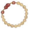 草莓晶象徵自信、勇敢、和平,能招桃花、帶來好運。而貔貅張嘴能吞萬物,只進不出,吞天下寶、吸八方財。而腳踏金錢,有步步生財、代代富貴的寓意。如意卷尾,則為平安如意、安康富足、幸福美滿的寓意。