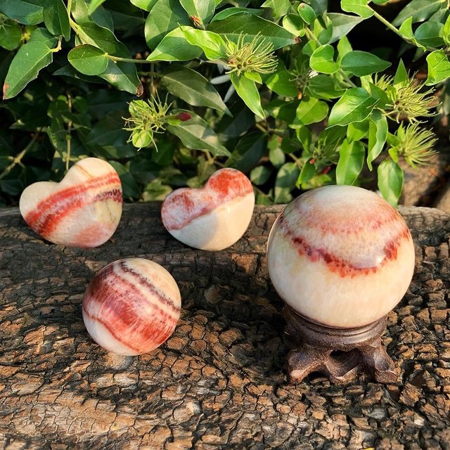 有關愛情的晶石,除了粉晶就是有著美麗鮭魚紅色的菱錳礦,又稱紅紋石或是印加玫瑰,代表激情與成熟的愛,象徵堅強熱烈的愛情,可喚醒人們心中對愛的需求,並願意付出,可治療因失戀帶來的痛苦與失落,讓情緒便得穩定柔和,幫助解惑及去除雜念,帶領人們有勇氣迎向未來新的戀情。