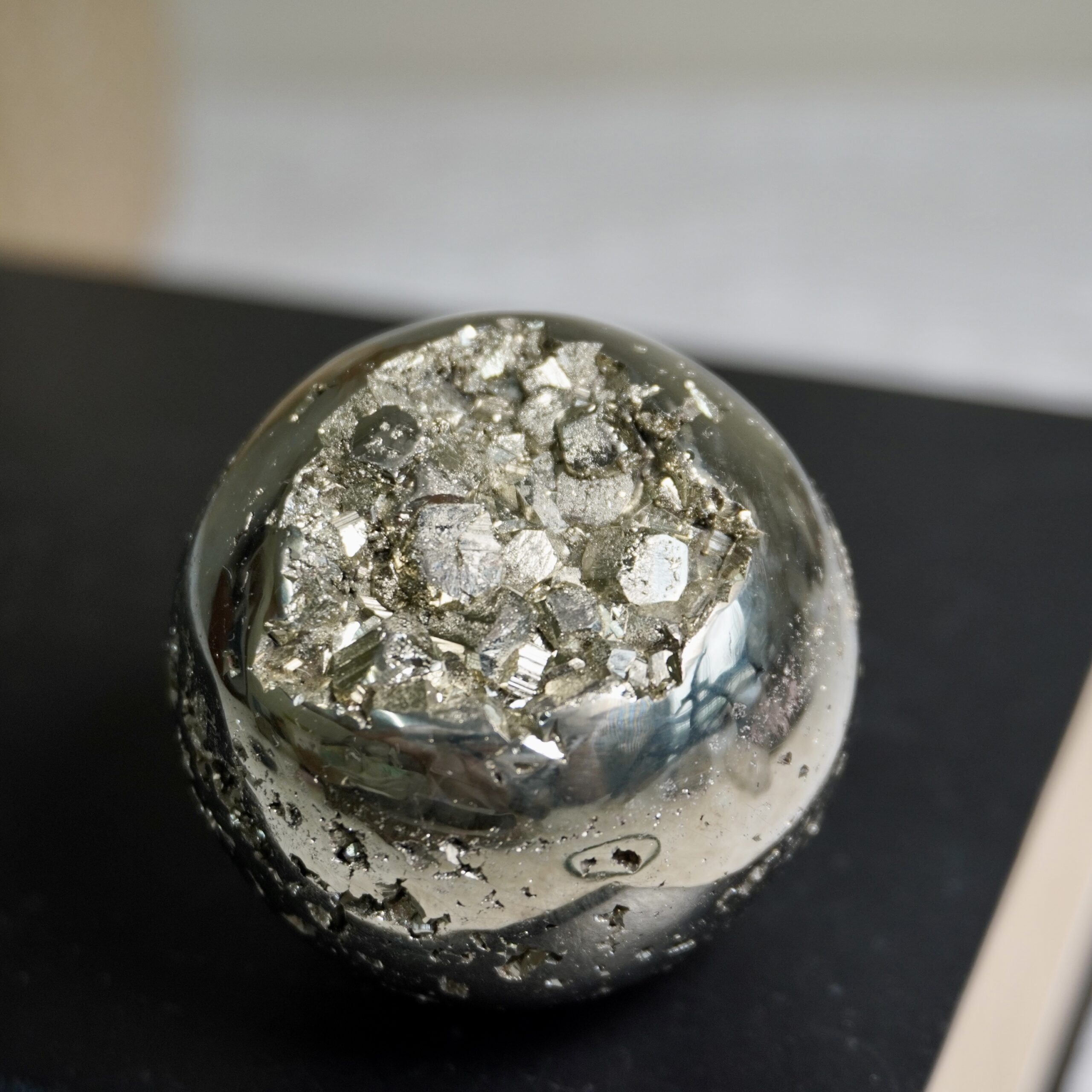 黃鐵礦又稱愚人金,帶有很閃耀的金色光芒,具有精緻的立方體結晶。金黃色能強化太陽輪的顯化力量,是帶來豐盛的第一名,黃鐵礦能強化接地的能量而有效地吸引及凝聚財富及豐盛。在身心靈層面,黃鐵礦具有保護力,能清除負能量帶來正面磁場,因而能穩定情緒帶來豐盛。
