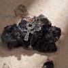 坦桑石,也是鐵達尼號中著名的那顆海洋之心寶石。坦桑石以獨特的藍紫色調而聞名,是一種非常獨特的寶石。在不同光線下,坦桑石會顯示出從藍色到紫色的多種色彩變化。坦桑石僅在坦桑尼亞的一个小區域開採,其稀有性和獨特的色彩讓其獨樹一格。