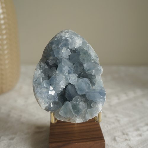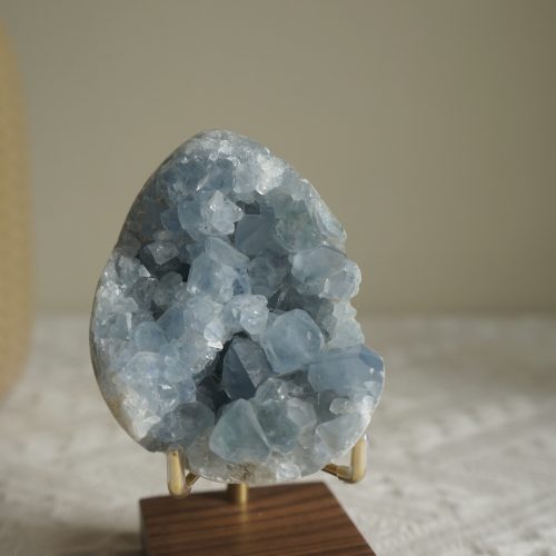 天青石Celestine,他的名字來自於拉丁語,亦即天體,靈感來自於祂天藍色的色澤。天藍色的顏色使天青石擁有天堂般的能量,能協助我們專注與安靜。透過祂,能感受到天青石對於思想及身體精神有鎮定及舒緩的效果。運用天青石的和平能量,能漸漸引導你的內在精神,往輕盈及高頻的方向前進。祂的治療特質能協助我們身體的放鬆,讓我們得到真正的休息。將祂放置空間中可將神聖之光,帶入我們的生活,能提升居家環境能量,使內在放鬆平靜。全方位的鎮定效果,使天青石成為舒緩壓力的有效助手,也是促進睡眠的最佳晶礦之一。