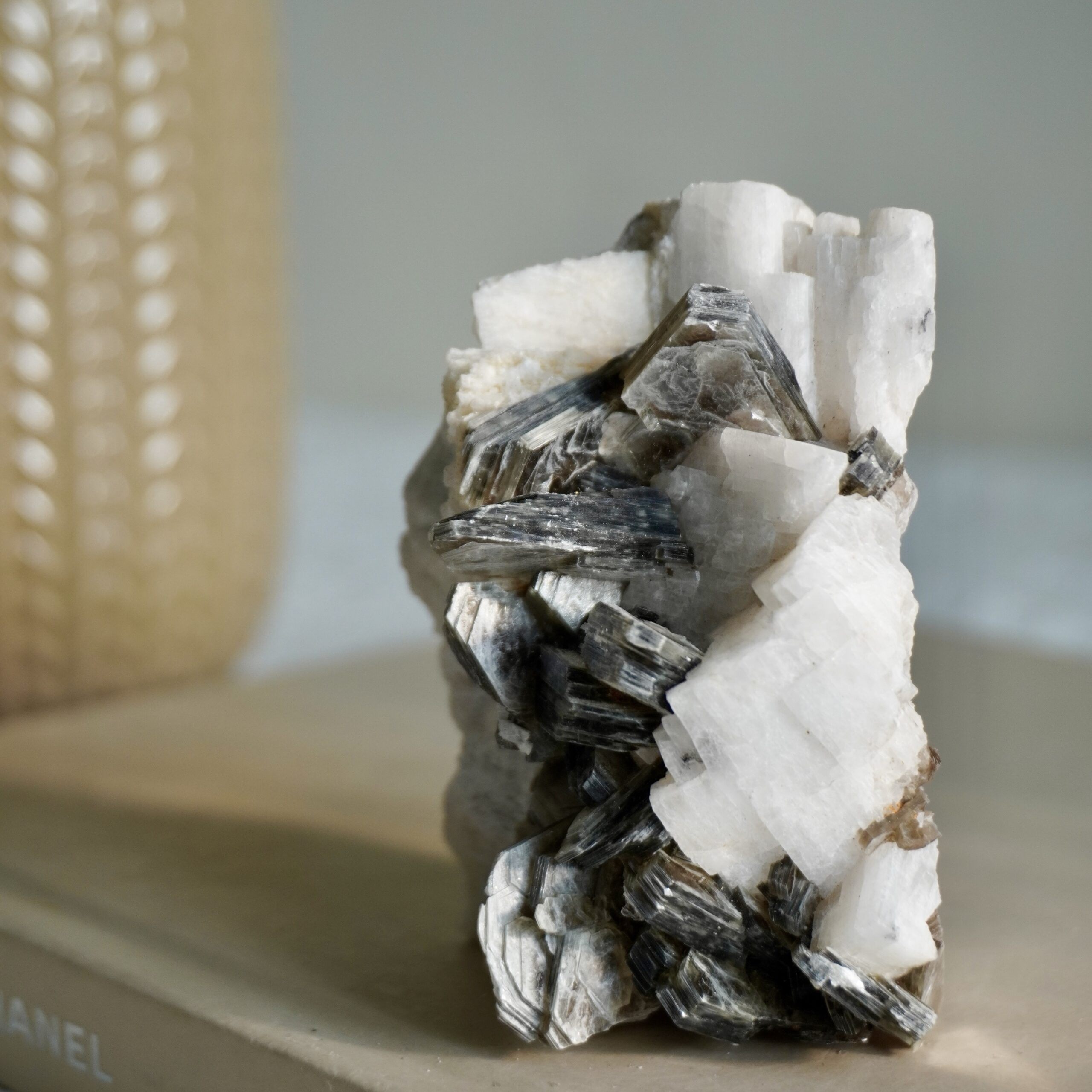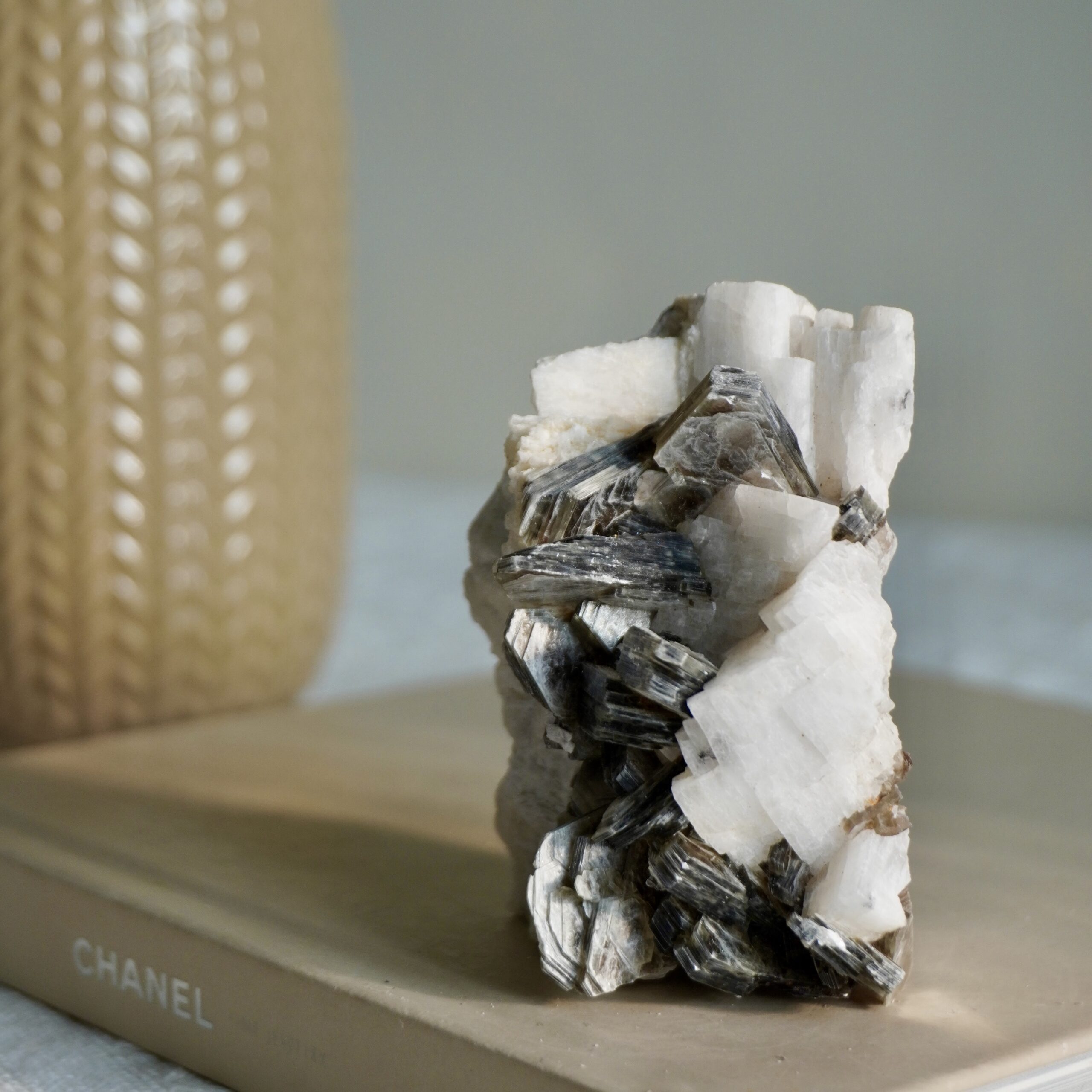 黑白經典 黑雲母花簇共生白長石